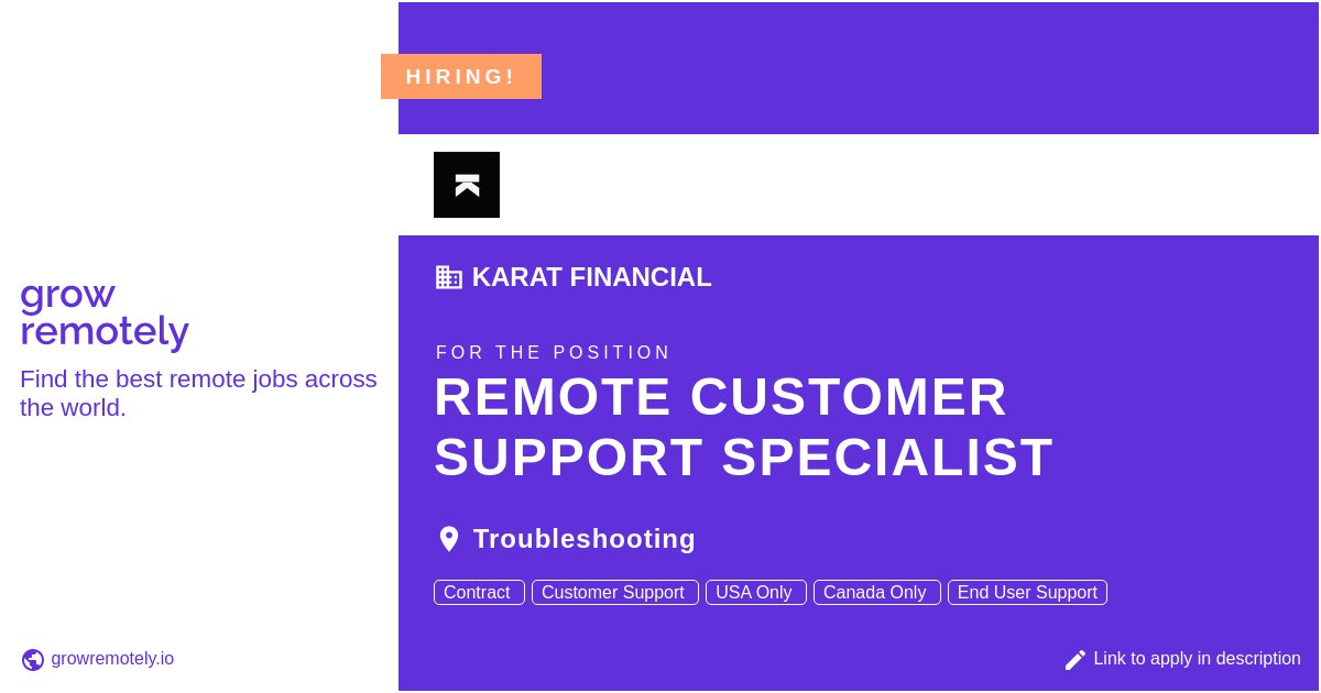Growremotely On Twitter Check Out This Job At Karat Financial For The Position Remote Customer Support Specialist Apply Link Https T Co Ssozaqnbdq Hiring Remotejobs Karatfinancial Customersupport Https T Co J89ilebxyt Twitter